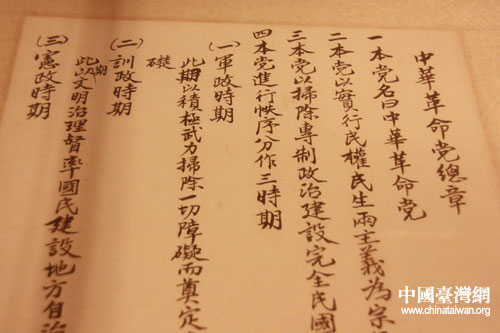 孙中山手书中华革命党总章。(中国台湾网 宿静 摄)