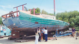 邱文彦说,古帆船极可能是现存最完整的中国古帆船,虽然艉部已遭改装,艏部被削去一些,但仍保有古中式木帆船原貌。现勘团队联系船场,得知旧金山船场主人在去年过世,但船场主人的女婿表示,乐意将古船捐还台湾。(中国台湾网 张真瑜)