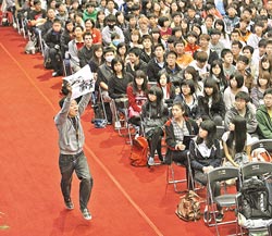 中国台湾网11月16日消息 据台湾《中国时报》报道,16日,台湾大学举行83周年校庆,校长李嗣涔上台致词不到5分钟,台大学生联盟的30多位学生突然冲出座位,手勾手、背靠背高举抗议布条,大喊“台大堆土机、居民去哪里、冷血台大、别拆我家”口号,抗议校方以诉讼手段要求绍兴社区居民拆屋赔款。李嗣涔脸色当场铁青,致词语气和声音也转为急促高亢。