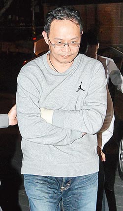 涉嫌监守自盗的故宫助理研究员陈耀东,15日凌晨从廉政部门被移送台北地检署复讯时不发一语,检方讯后向台北地方法院声押获准。(图片来源:台湾《中国时报》)