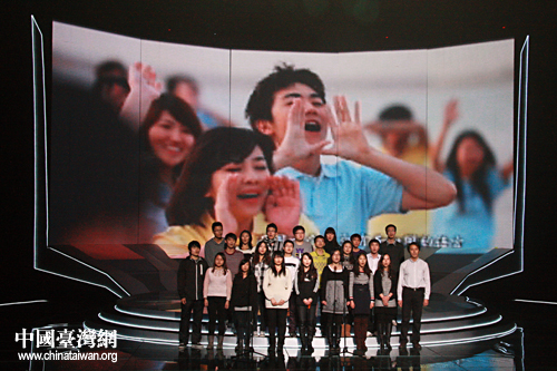 在颁奖晚会上,两岸大学生合唱歌曲《我们的心》。(中国台湾网 王伟 摄)