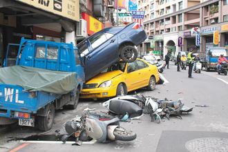 中国台湾网12月17日消息 据台湾《联合报》,男子陈俊隆16日拉货经过新北市一地段时,可能误将油门当刹车踩下,车子猛往左前方逆向冲去,先撞击摩托车上的杨姓女子,再撞上停在路边的2辆汽车和5辆摩托车,杨女经送医急救不治。