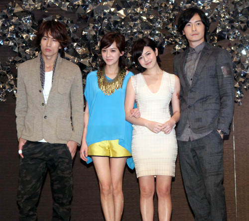 言承旭(左)上月出席《花漾》媒体见面会时,右手食指就包扎着。(图片来源:台湾《联合报》)