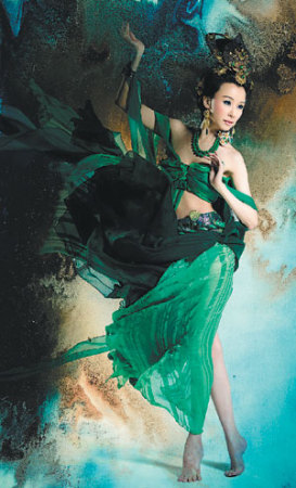 萧蔷化身敦煌飞天仙女,年历造型唯美动人。(图片来源于:台湾《联合报》)