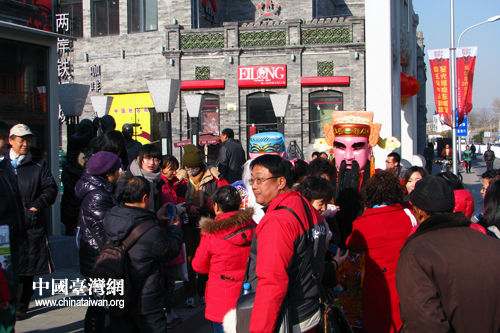 电音三太子被热情的游客团团包围。(中国台湾网 马迪 摄)