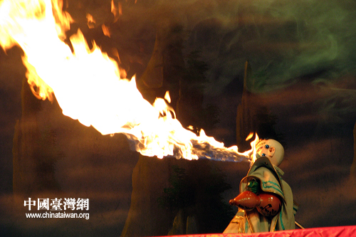 口吐火焰的金光布袋戏偶。(中国台湾网 马迪 摄)