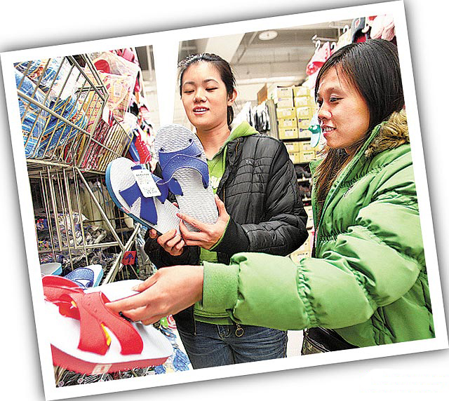 台媒记者将6大卖场购得的蓝白拖鞋送SGS检验,其中有5家塑化剂含量超标。(图片来源:台湾媒体)