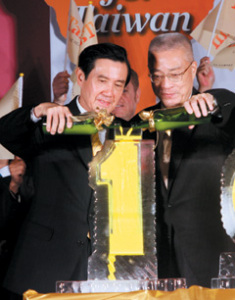 马英九(左)、吴敦义(右)昨天参加观光节庆祝大会。(图片来源于:台湾《联合报》)