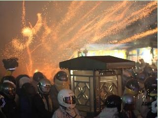 台南盐水蜂炮活动有一定的危险性,参与者的装备也很考究。(图片来自台湾媒体)