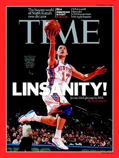 《时代》封面标题就是“林来疯(Linsanity)”,夸赞林书豪照亮(light up)整个NBA,并指出自从1976年以来,没有任何新秀前7场总得分高于林书豪,包括乔丹和詹姆斯两位篮球大帝。《运动画刊》封面是林书豪出战洛杉矶湖人队时,单刀切入禁区,湖人五虎将严阵以待的照片。封面标题Against All Odds说明了林书豪如何克服各种阻碍,骤然崛起的历程。(中国台湾网 吴斌)