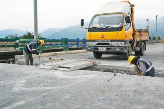 花莲县玉里大桥桥面高低起伏,台“公路总局”正进行桥面抬升与伸缩缝接合工程。(图片来源:台湾《联合报》)