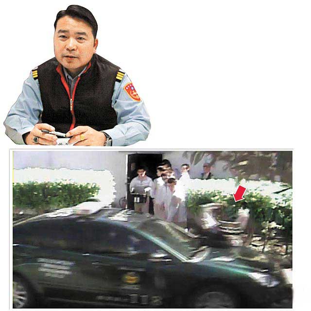 王建文(上图)搭公务车撞伤士兵(箭头处,翻摄画面),竟私下和解。图片来自台媒