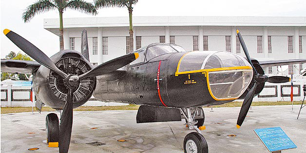 黑蝙蝠中队驾驶的B-26轻型轰炸机昨日在高雄展出。(图片来源:台湾媒体)