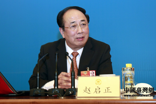 谈到两岸问题时赵启正表示,政协委员们在各种会议上和视察活动中,一直都特别关心两岸问题,对两岸问题的研究不仅有热情,而且有亲情。我们都认为,两岸只要坚持以和平发展为主题,推进两岸对话,深化政治互信,特别是加强两岸的民众交流,就一定会出现新的局面。而政协有34个界别,有各种各样的人物,他们参与对台对话,一定找得到最合适的对话对象,找到很多新朋友。