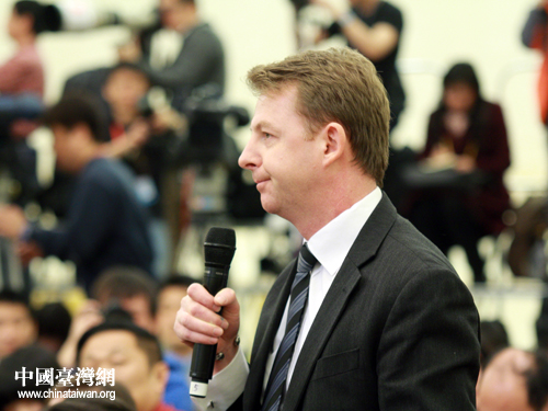 4日上午11时,十一届全国人大五次会议在人民大会堂三楼金色大厅举行了新闻发布会,大会发言人李肇星就会议议程和人大工作相关的问题回答了中外记者的提问。图为英国ITV记者现场提问.(中国台湾网 王伟 摄)