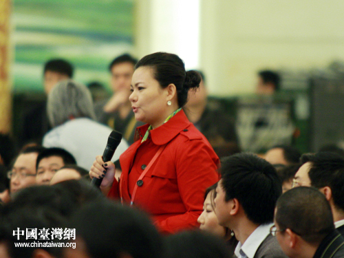 4日上午11时,十一届全国人大五次会议在人民大会堂三楼金色大厅举行了新闻发布会,大会发言人李肇星就会议议程和人大工作相关的问题回答了中外记者的提问。图为美国中文电视、美国中文网记者现场提问。(中国台湾网 王伟 摄)