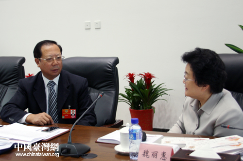 9日上午,国家旅游局副局长王志发参加了十一届全国人大五次会议台湾代表团的讨论,图为王志发与台湾团代表交流问题。(中国台湾网 杨丽 摄)