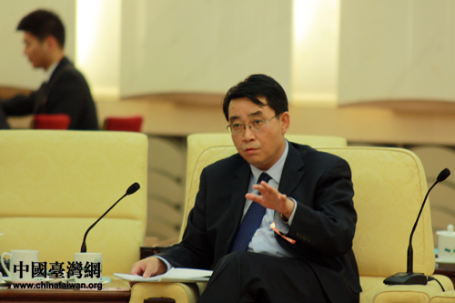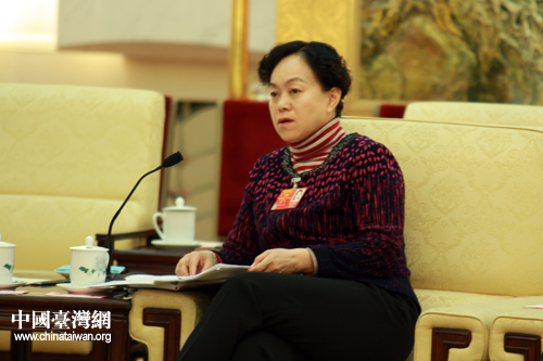 出席十一届全国人大五次会议的台湾代表团,10日下午在人民大会堂台湾厅举行开放团组活动。朱台青代表认为,要加快政府职能部门的法制化建设。(中国台湾网 王伟 摄)