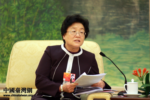 出席十一届全国人大五次会议的台湾代表团,10日下午在人民大会堂台湾厅举行开放团组活动。魏丽恵代表就加强慈善立法研究等多项议题提出建议。(中国台湾网 王伟 摄)