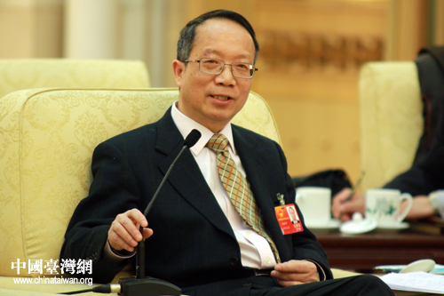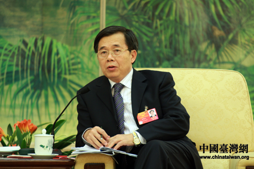出席十一届全国人大五次会议的台湾代表团,10日下午在人民大会堂台湾厅举行开放团组活动。来自福建的陈耀中代表回答了记者关于海西经济区建设的问题。(中国台湾网 王伟 摄)