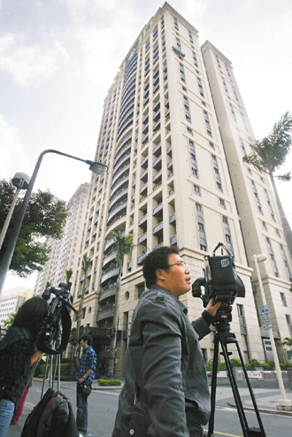台湾房仲公会拟将具争议性的政治名人住所列为嫌恶设施,象是图中陈水扁居住过的宝来花园广场,曾因媒体采访造成居民困扰,未来类似的信息都必须在房产交易中揭露。(图片来源:台湾《联合报》)