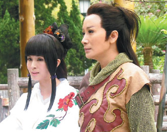 洪瑞襄(左)在陈亚兰的歌仔偶像剧《神龙传说-天龙双骄》中戏分还没拍完,就结束生命。(图片来源:台湾《联合报》)