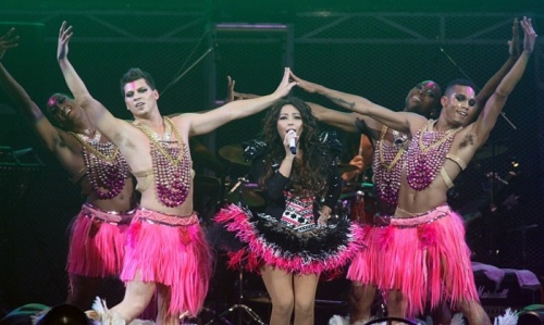 妖娆猛男相伴,张惠妹惹火献唱。(图片来源于:台湾《联合报》)