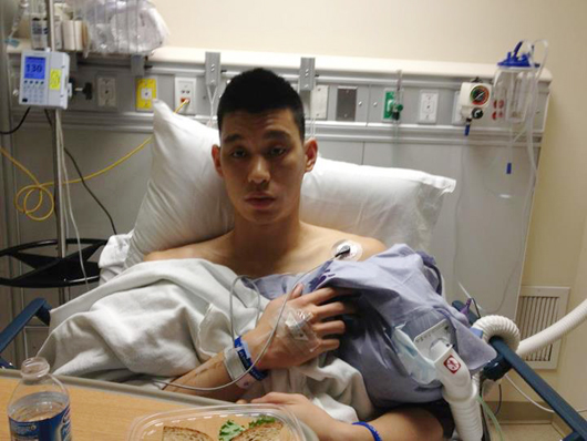 中国台湾网4月3日消息 据台湾“联合新闻网”报道,3日清晨5时17分左右,美国职业篮球联赛华裔球星林书豪在脸书(facebook)上公布了一张自己躺在病床上的照片。照片里的林书豪看起来很虚弱,文字动态写着:“感谢上帝让手术顺利成功,现在要朝复原迈进!加油。十分感谢球迷们的支持与留言鼓励。”