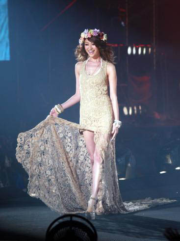 日前才嫁给花心男小栗旬的超级名模山田优,以一袭大地色蕾丝长尾裙漂亮现身,内搭白色绕颈小可爱,蓬松的波浪卷发,头戴五彩缤纷花圈,宛如丛林里迷了路的花精灵,利落又大方。
