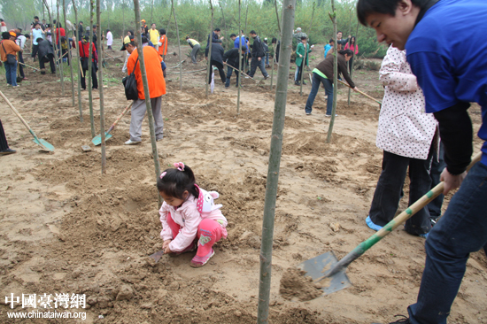 祖籍台南市的李溪岩小朋友与妈妈携手植树。(中国台湾网 王思羽 摄) 第1页第2页第3页