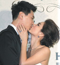 Ella(右)与赖斯翔深情一吻,感动众人。(图片来自网络)