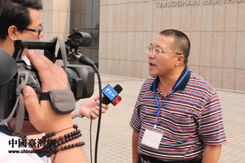 图为台湾基层民众大陆参访团嘉义县团长颜文正接受记者采访。(中国台湾网发 张成标 摄)