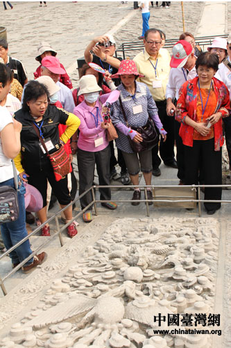 台湾基层民众游览清东陵。图为高雄小港团团员观看石雕。(中国台湾网发 张成标 摄)