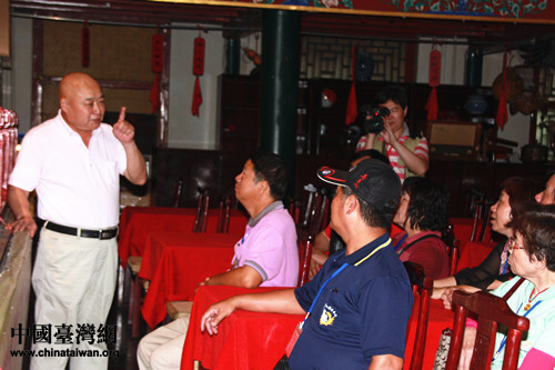台湾团员听湖广会馆馆长霍建庆讲述会馆历史。(中国台湾网 刘承思 摄)