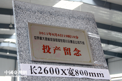 元泰达沫铝厂是一家以生产泡沫铝的高科技朝阳企业。这是一家援建项目,也是灾后广元在恢复中推进转型升级的成功实践。图为该企业在广元下线的留念产品。(中国台湾网 杨丽 摄)