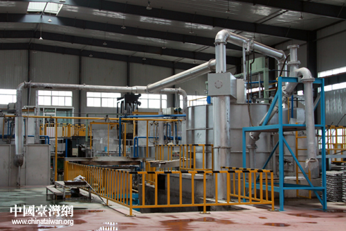 元泰达沫铝厂是一家以生产泡沫铝的高科技朝阳企业。这是一家援建项目,也是灾后广元在恢复中推进转型升级的成功实践。图为该企业生产线。(中国台湾网 杨丽 摄)