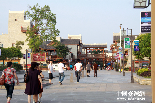 北川巴拿恰街尾对过是片广场,黄昏时分,不少人来到广场散步。(中国台湾网 杨丽 摄)