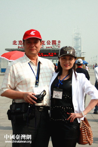 张超雄与杨淑女在奥林匹克公园门口合影留念。(中国台湾网 郜利敏 摄)
