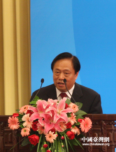 全国人大常委、全国台联会会长梁国扬,台湾中国统一联盟主席、两岸和平发展论坛召集人纪欣,世界台商联合总会总会长黄正胜,台湾中华两岸文经观光协会名誉理事长许文彬等7人分别做主题演讲。