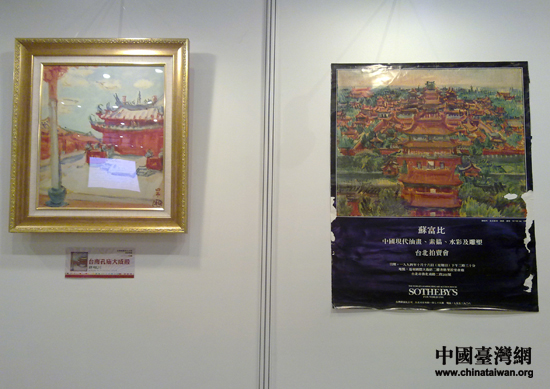 郭柏川所绘的台南孔庙与北京故宫并排而立。(中国台湾网 王思羽 摄)