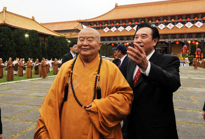海协会会长陈云林(前右)24日率团抵达高雄访问,下午前往佛光山拜访星云大师(前左)。(图片来源:台湾今日新闻网)