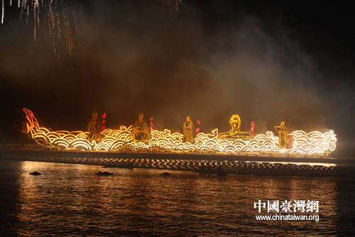 中国台湾网5月17日长沙消息 17日晚,第九届海峡两岸媒体来湘联合采访团一行来到长沙市橘子洲头,观看在此间举办的第七届中博会大型全景激光音乐焰火晚会。(记者 张晓静)