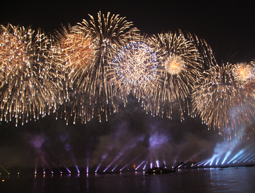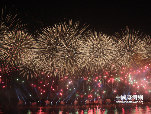 第七届中博会焰火晚会在长沙市橘子洲头上演 (中国台湾网 张晓静 摄)