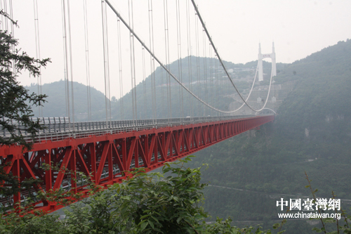 矮寨特大悬索桥桥面主体 (中国台湾网 张晓静 摄)