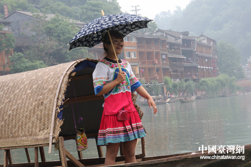 苗族女孩沱江放歌 (中国台湾网 张晓静 摄)