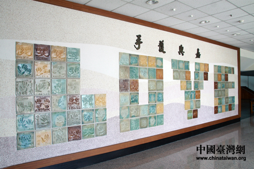 “手护嘉义”:充满爱的love字母的手印墙。(中国台湾网 李丹 摄)