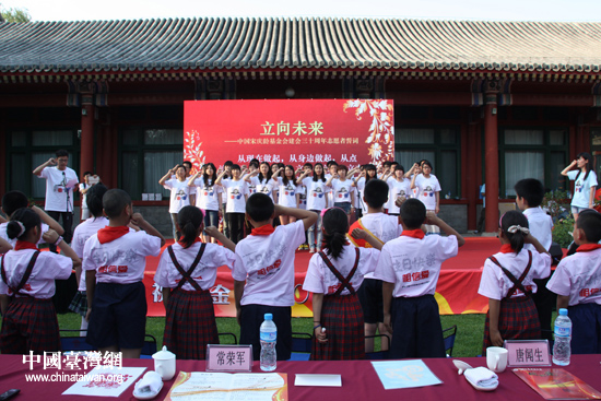 海峡两岸的志愿者共同宣誓,承诺愿意成为一名光荣的中国宋庆龄基金会志愿者。(中国台湾网 孟雅诗 摄)