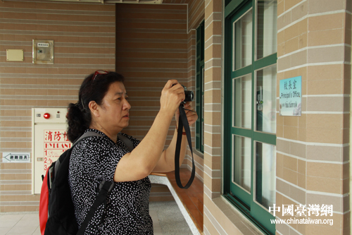 北京市丰台区西铁营小学的解立霞校长拍下教室多语言标签。(中国台湾网 李丹 摄)