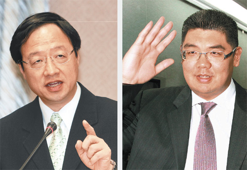 台北市长郝龙斌第二任任期将过半,国民党内有意参选2014市长者已开始暖身。其中悠游卡公司前董事长连胜文(右)与台“行政院副院长”江宜桦(左)最受外界关注。