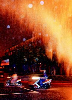 台北昨晚下起倾盆大雨,雨水跟倒的一样,桃园以北民众严阵以待。(图片来源:台湾《联合报》)